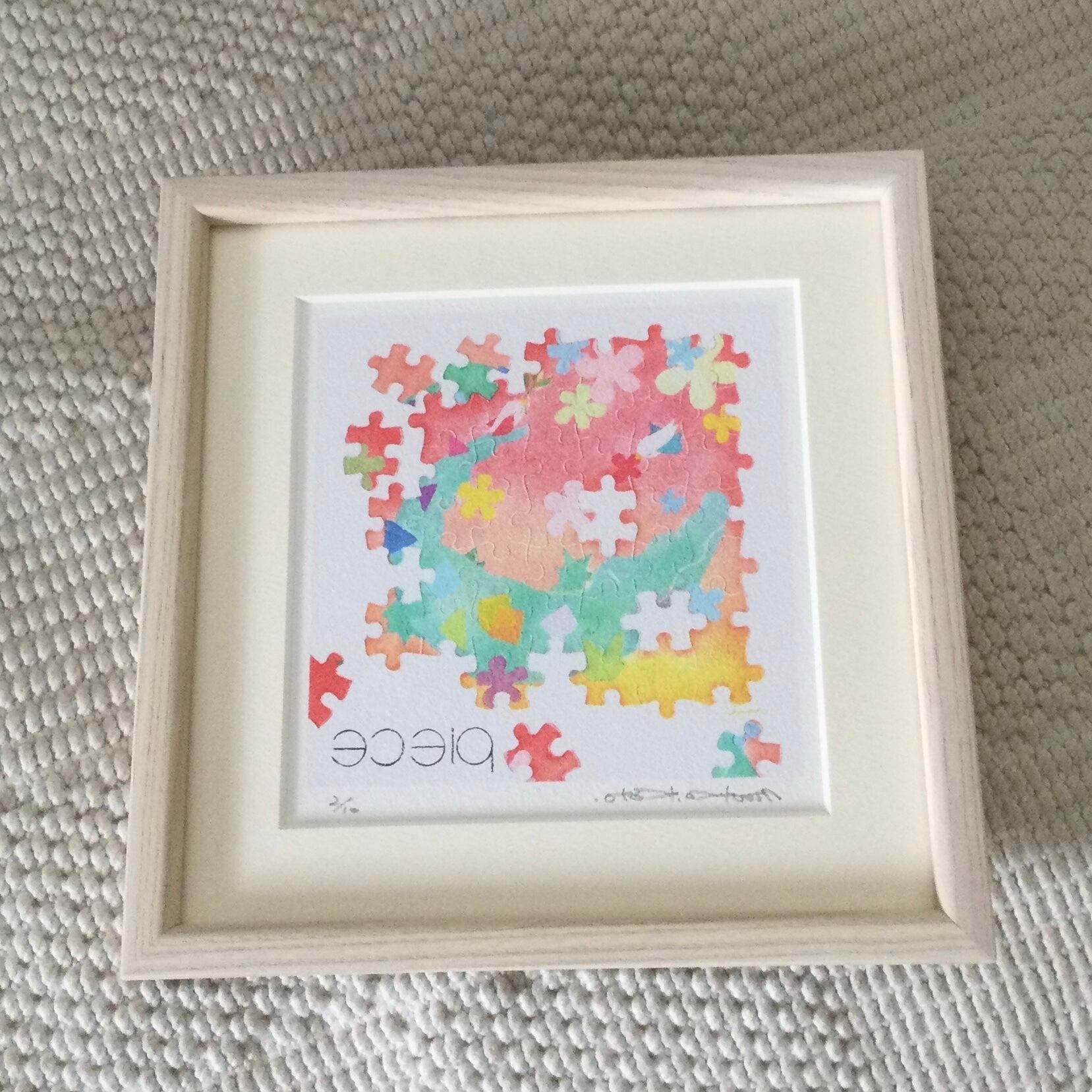 #パステル #ジクレー #平和 #贈り物 #優しい絵 #パズル #ピース #ワニ #イニシャル #アート #リビングに飾る絵 #子供部屋に飾る絵 #桃色 #ピンク